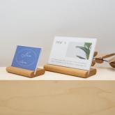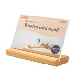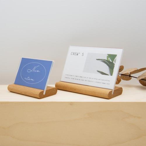 【木製台座が温かみを感じさせるカード立て】 透明度の高いアクリル製で、写真や文字をくっきりキレイに見せることができます。 既製品サイズは名刺立てサイズ・W65xH40mmサイズの2サイズとなっております。 オリジナルサイズを製作することも可能です。